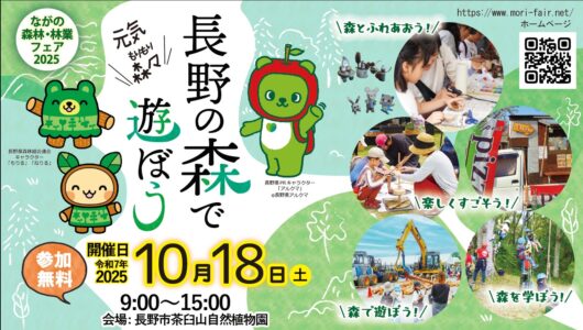 令和7年10月18日(土曜)に長野市茶臼山自然植物園で【ながの森林・林業フェア 長野の森で遊ぼう】が開催されます。