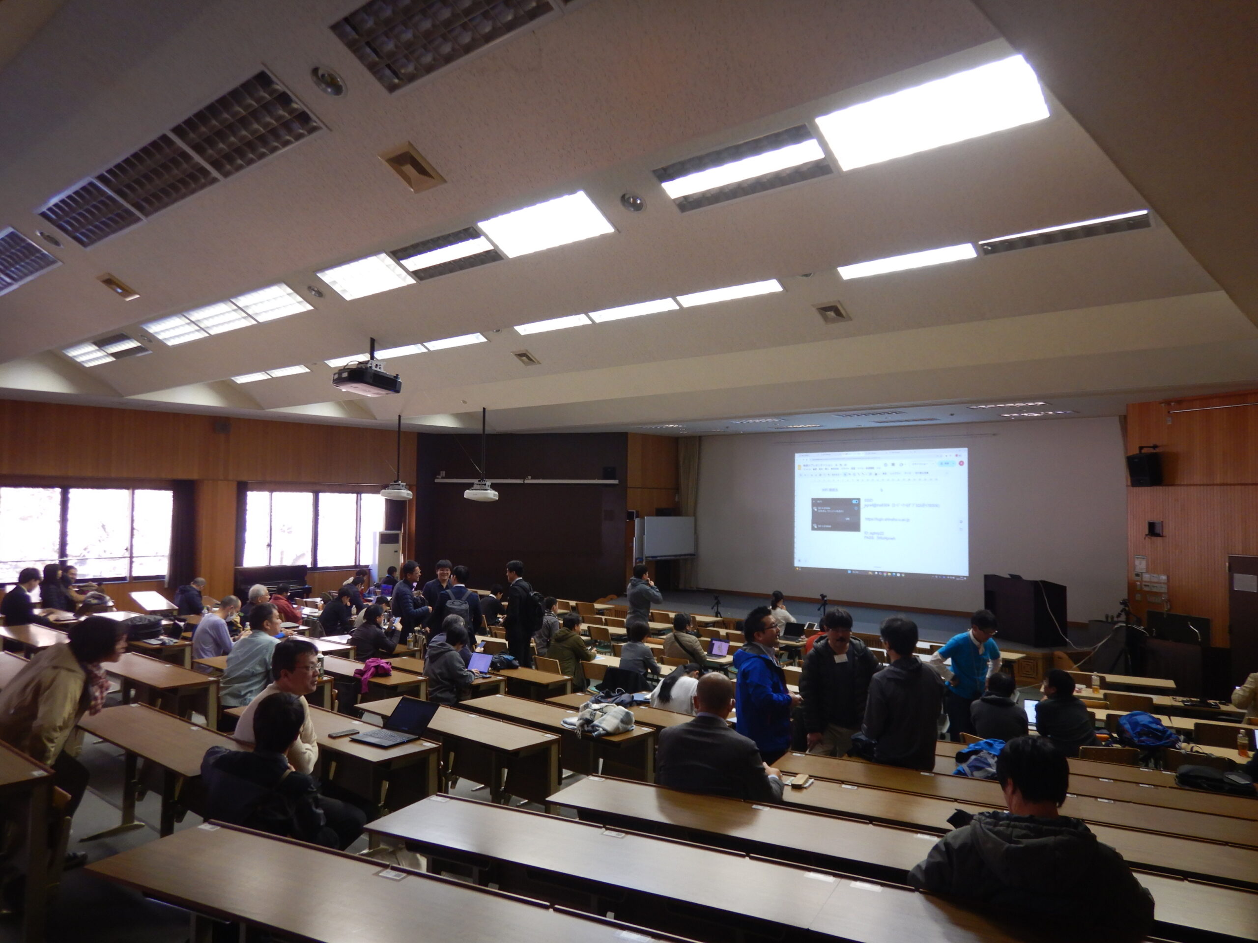 FOSS4Gとは、自由でオープンソースな地理情報ソフトウェア群の祭典として世界各地で開催されているもので、初日にコアデイ(基調講演・一般発表・ポスターセッション)と2日目にハンズオンデイ(講座・ワークショップ)が行われ、全国の研究者や学生、測量や調査に携わる企業の関係者が約100名ほどが参加しました。